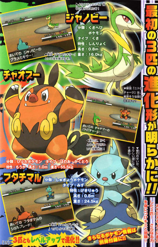 - En uno de los scans podemos ver a Reshiram y Zekrom, los cuales tienen unos movimientos exclusivos llamados Cruce Llama y Cruce Trueno respectivamente, ataques que incrementan su poder si se utilizan uno detrás de otro.