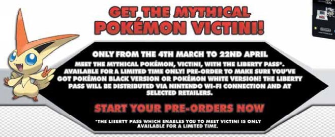 El último número de la Revista MCV de Reino Unido acaba de revelar el esperado evento de Victini en Europa, que tendrá lugar por medio de la CWF de Nintendo y tiendas especializadas entre 4 de marzo y 22 de abril. Es casi seguro que estas fechas serán iguales en Espańa.