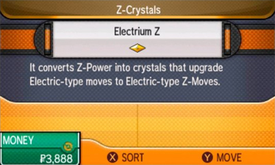 Movimientos Z: Otras novedades sobre los Movimientos Z es que requieren un objeto equipado para activarlos. Normalmente el objeto es genérico, pero hay objetos especiales que dan Movimientos Z exclusivos a Pokémon como Snorlax o Raichu de Alola: