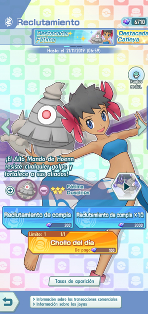 error Ciertas funciones de Pokémon Masters como el Reclutamiento de Compis pueden presentar problemas relacionados con la adicción al juego. Si crees que tú o algún conocido invierte demasiado dinero real en estas funciones, recomendamos buscar ayuda especializada (buscar ayuda).
