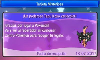 Varios meses después que Japón, por fin podemos descargar en las versiones PAL de Europa y Australia de Pokémon Sol y Luna (y próximamente en las versiones de América) el Pokémon legendario Tapu Koko en su versión variocolor (shiny).
