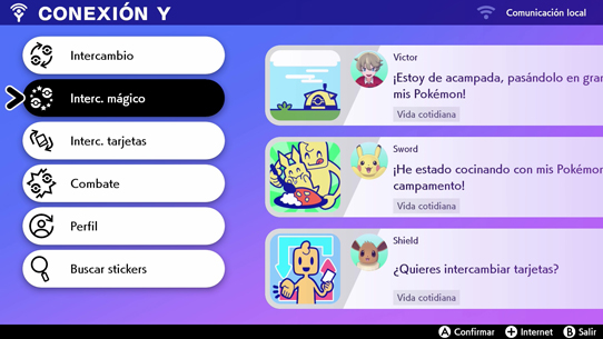 Gracias a la Conexión Y, podrás intercambiar Pokémon, librar combates y muchas más cosas. El juego estará constantemente en busca de jugadores con los que hacerlo. Evidentemente, necesitarás estar suscrito a Nintendo Switch Online para disfrutar, por ejemplo, de los intercambios y combates en conexión, además de los intercambios mágicos (wonder trades).