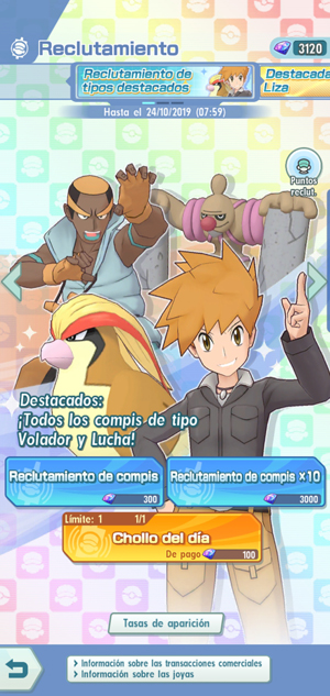 error Ciertas funciones de Pokémon Masters como el Reclutamiento de Compis pueden presentar problemas relacionados con la adicción al juego. Si crees que tú o algún conocido invierte demasiado dinero real en estas funciones, recomendamos buscar ayuda especializada (buscar ayuda).