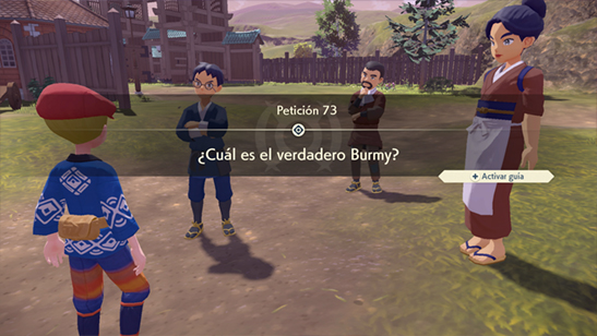 Talpán, Narea y Sabaru no se ponen de acuerdo en cuál es la verdadera forma de Burmy, así que cada uno te ha pedido que le muestres un ejemplar distinto.