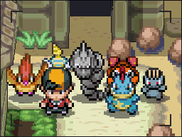 - Lee el cartel del fondo. Si tienes a Ho-Oh en el equipo, se abrirá una puerta a una sala con algunos objetos útiles (mira más abajo), y más adelante caes a una sala con un mensaje secreto (nosotros los humanos debemos aprender a vivir en harmonía con ellos, nos marcharemos por su bien).