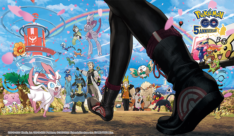 Arte de Aniversario (Japón):Pokémon GO ha publicado varias imágenes de arte en Japón por el 5ş Aniversario de Pokémon GO: