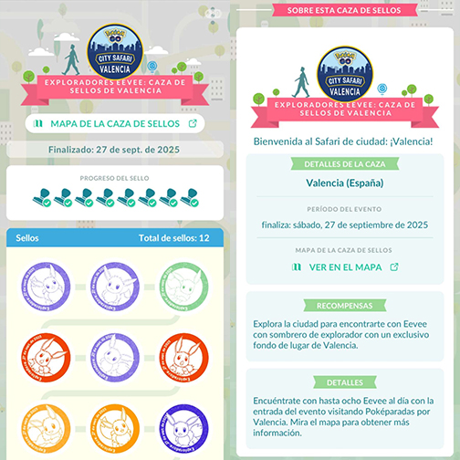 - Hoja de Sellos: Al entrar en una zona con Poképaradas promocionales que tengan un Sello del evento, obtienes la Hoja de Sellos. Esta Hoja de Sellos aparece entonces como opción en la vista de mapa, para llevar un control más directo de tu progreso y comprobar los lugares donde se pueden recoger Sellos con la ayuda de Google Maps.