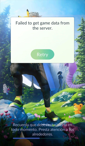 Esta pantalla aparece cuando hay un error de carga de un combate, por ejemplo cuando tratas de combatir en un Gimnasio que acaba de ser derrotado por otro jugador. |