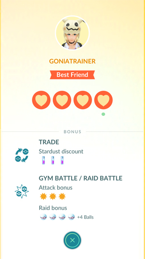 Niveles de Amistad:Los niveles de Amistad que hay en Pokémon GO son los siguientes:
