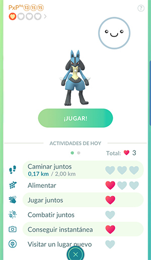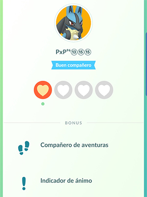 Cada Pokémon guarda la distancia total de km recorridos junto con él de Compańero, y además la distancia recorrida para conseguir un Caramelo del Pokémon: