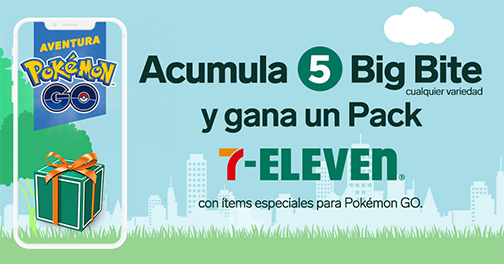 Si acumulas 5 Big Bite en la app oficial de 7-Eleven México, recibes un código promocional para Pokémon GO que otorga un Pack promocional con 3 objetos de entre los siguientes: