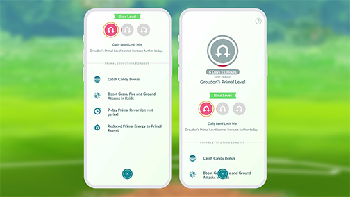 Desde ese momento puedes causar la Regresión Primigenia sin coste dejando pasar tiempo en función del Nivel Primigenio del Pokémon, o bien usando Energía Primigenia.