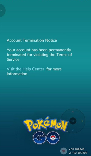 Aparece un mensaje de advertencia para informarte de que han detectado que has hecho trampas en tu cuenta. Puede que no tengas la oportunidad de encontrar Pokémon raros de forma salvaje, y podrías quedar excluido y no recibir más Pases para Incursiones EX. Este Aviso dura aproximadamente 7 días. |