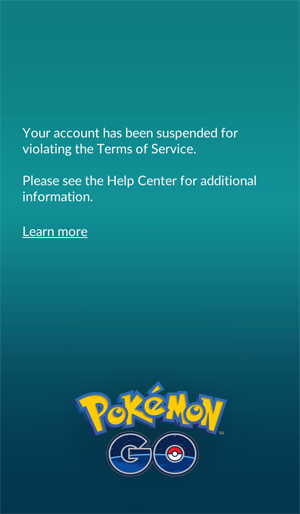 Si recibes un segundo Aviso, perderás temporalmente el acceso a tu cuenta de Pokémon GO. Cuando intentes acceder al juego, aparecerá un mensaje que indica que la cuenta ha quedado suspendida. No podrás saltar este mensaje. Este toque de atención dura aproximadamente 30 días. |