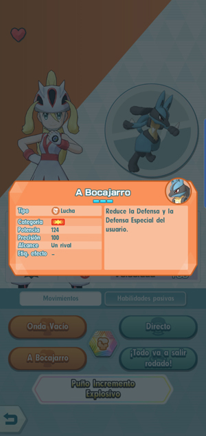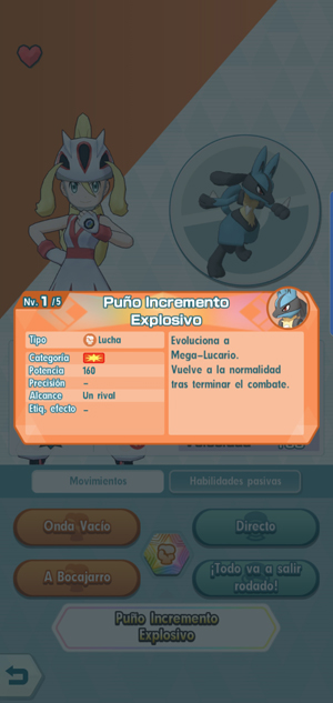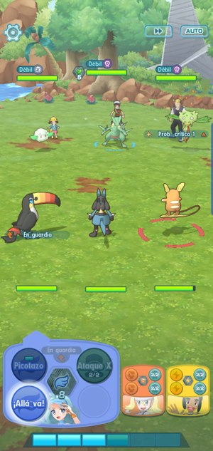 - Tipo: Todos los movimientos que pueden hacer dańo (es decir, los Movimientos de Pokémon, los Movimientos Compi y los Ataques Combinados cuando los 3 Pokémon son del mismo tipo) tienen su propio tipo de entre los 18 tipos de Pokémon existentes.