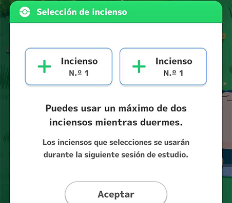 Incienso que garantiza la aparición de Pokémon de la especie en concreto de tipo Planta en el siguiente estudio del sueńo. Se consume al usarlo. |