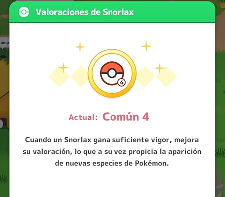 - Valoración: La valoración del crecimiento de Snorlax cada semana va aumentando de rango, desbloqueando más Pokémon esa semana y regalando Fragmentos de Sueńo.
