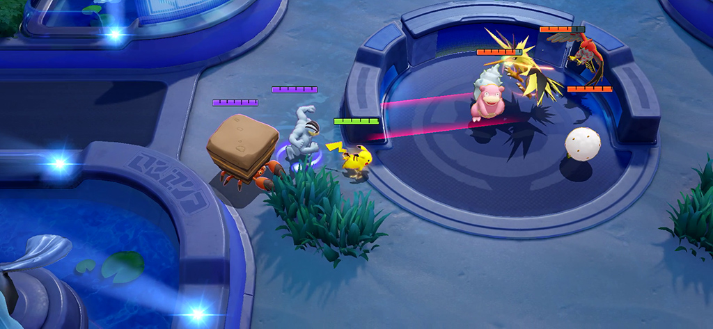 - Combate en Tiempo Real: Los combates reúnen a 2 equipos de jugadores en combates en tiempo real con hasta 10 Pokémon combatiendo en pantalla, y los Pokémon Salvajes.