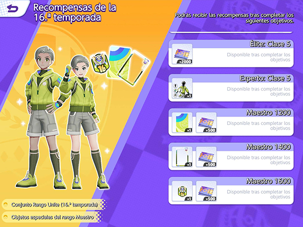 Las Recompensas de la Temporada 16 son las siguientes: