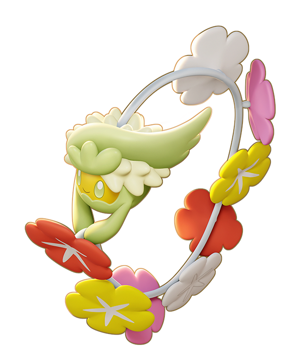 El Pokémon genera una flor cada cierto tiempo y 4 flores si entra en la hierba alta, pudiendo acumular hasta 8 flores. Al usar Síntesis, Cura Floral o Beso Dulce, el Pokémon consume todas las flores para potenciar ese movimiento. La velocidad de desplazamiento de este Pokémon aumenta cuando se encuentra cerca de un Pokémon aliado al que le queda el 50% o menos de sus PS. Este Pokémon se puede ahderir a un Pokémon aliado al usar Síntesis, Cura Floral o Beso Dulce. Mientras se encuentra adherido a un Pokémon aliado, no puede ser golpeado por ataques y recupera PS con el paso del tiempo. Si el Pokémon aliado recoge más Energía Ćos de la que puede acumular, este Pokémon recoge el exceso de Energía Ćos. Si el Pokémon aliado marca un tanto, este Pokémon marca otro tanto con la misma Energía Ćos. |