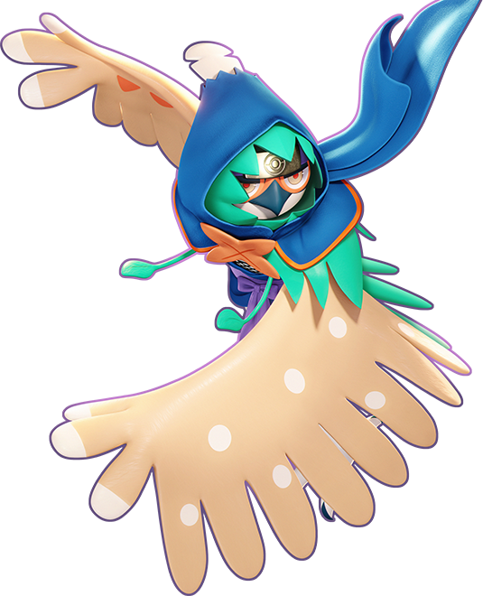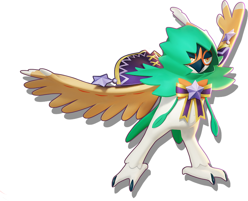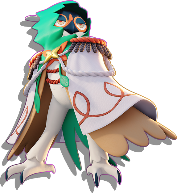 Dispara plumas cortantes en la dirección elegida, causando dańo a los Pokémon rivales. El ataque finaliza lanzando una pluma cortante enorme que causa dańo a todos los Pokémon rivales en su trayectoria y causa dańo adicional a los Pokémon rivales con pocos PS restantes. Mientras usa este movimiento, el usuario es inmune a restricciones pero no puede desplazarse. Efecto Ofensivo: Por un tiempo breve, el Movimiento Unite otorga un escudo de poca potencia al usuario, aumenta un poco su velocidad de desplazamiento y, o bien aumenta mucho su velocidad de ataque, o bien reduce los tiempos de recarga de sus movimientos. |