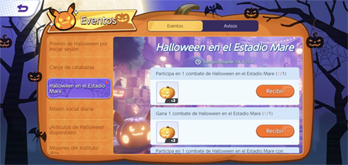 - Misiones: Las Misiones del evento permiten conseguir Calabazas con las que obtener poses, pegatinas, fondos y marcos del avatar inspirados en Halloween y otros objetos.