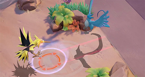 - Pikachu Impactrueno: Hace que el Pokémon suelte rayos con sus ataques básicos, que al golpear a los Pokémon rivales reducen su velocidad de desplazamiento y de ataque básico.