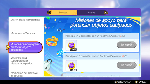 Misiones de apoyo para potenciar objetos equipados
