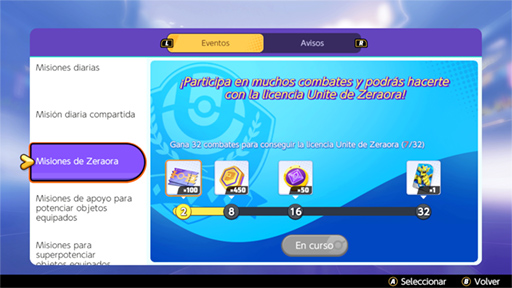 - Zeraora: Licencia UNITE de Zeraora por acceder al juego en Nintendo Switch durante el evento. Puedes recogerlo en el Correo del juego.