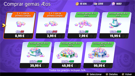 » Ten en cuenta que las Gemas Ćos adquiridas en Nintendo Switch no aparecen en la versión móvil del juego, ni viceversa. Para poder usar las Gemas Ćos debes estar usando la plataforma donde las compraste.