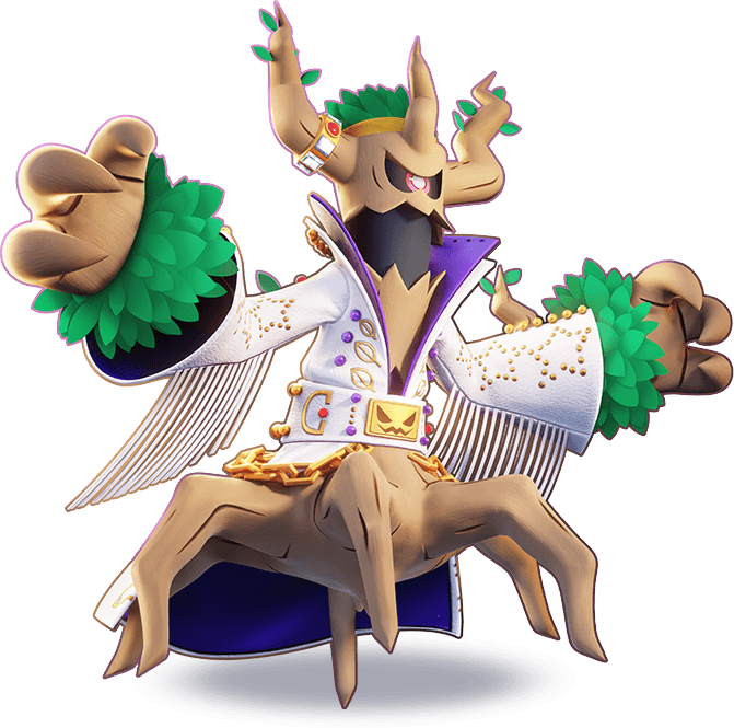 El usuario crea un bosque maldito que causa dańo a los Pokémon rivales en el área de efecto, lanzándolos y reduciendo su velocidad de desplazamiento por un tiempo breve. Los ataques básicos de todos los Pokémon aliados causan más dańo por un tiempo breve a los Pokémon rivales alcanzados por este movimiento. El usuario obtiene un escudo cuando acierta con este movimiento, que es más resistente cuantos más Pokémon rivales alcanza. Los efectos de recuperación de PS del usuario se potencian mientras el escudo está activo. Efecto Defensivo: Por un tiempo breve, el Movimiento Unite otorga un escudo de gran potencia al usuario y aumenta un poco su velocidad de desplazamiento. |