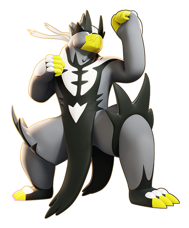 El usuario causa dańo y empuja a los Pokémon rivales en el área de efecto. La velocidad de desplazamiento del usuario aumenta por un tiempo breve, y se reduce el tiempo de recarga de sus movimientos. Al usarlo de nuevo, el usuario lanza 5 golpes seguidos al Pokémon rival elegido, causándole dańo y empujándolo. El número de golpes aumenta en 1 por cada dos veces que el usuario golpea a Pokémon rivales entre ambos usos de este movimiento, hasta un máximo de 10 golpes. Mientras lanza golpes seguidos, el usuario recibe menos dańo y es inmune a restricciones. Tras el último golpes seguido, causa dańo y empuja a les Pokémon rivales en un área de efecto hacia delante. Efecto Equilibrado: Por un tiempo breve, el Movimiento Unite otorga un escudo de poca potencia al usuario, aumenta un poco su velocidad de desplazamiento y, o bien aumenta mucho su velocidad de ataque, o bien reduce los tiempos de recarga de sus movimientos. |