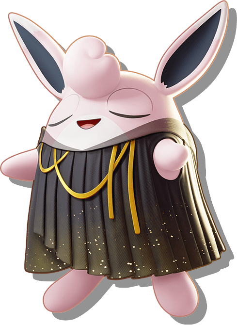 El usuario da un recital que le otorga un escudo con el que se protege y protege a los Pokémon aliados que tiene cerca, además de curar sus problemas de estado e impedir que sufran restricciones por un tiempo breve. Efecto Auxiliar: Por un tiempo breve, el Movimiento Unite otorga un escudo de poca potencia al usuario, aumenta un poco su velocidad de desplazamiento y reduce mucho los tiempos de recarga de sus movimientos. |