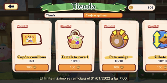 El límite máximo de cada canje se reinicia el día 1 de cada mes. Desde el 28 de octubre de 2022, es posible usar las Galletas de Agradecimiento para comprar Niveles de Afinidad adicionales con los Pokémon exclusivos del Servicio de Reparto, siempre que los hayas conseguido alguna vez y te falten Galletas de Afinidad con ellos: