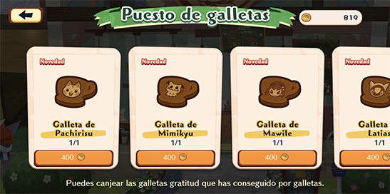 Canje de Galletas de Pokémon Café ReMix:En Pokémon Café ReMix puedes conseguir Galletas de Pokémon para el Entrenamiento de Pokémon. Cuando un Pokémon alcanza el máximo de 20 Galletas, obtiene Galletas de Agradecimiento. Las Galletas de Agradecimiento se pueden gastar en lo siguiente: