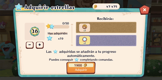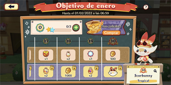 Para avanzar en los objetivos mensuales debes ir consiguiendo estrellas en Comandas Ordinarias (★) y en Prácticas (★). También puedes avanzar objetivos pagando Bellotas (100 Bellotas por ★).
