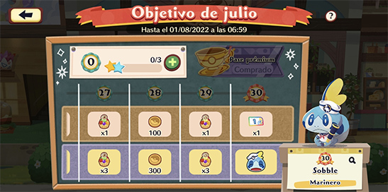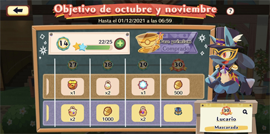 - Menú Prémium: El menú prémium es de pago y permite conseguir recompensas adicionales y un atuendo exclusivo de Pokémon, así como nuevos Pokémon (desde septiembre de 2022).