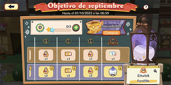 Los premios especiales de este mes son Litwick, Galletas de Litwick y Litwick Farolillo.