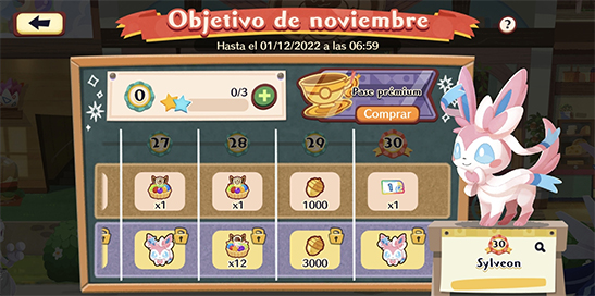 Los premios especiales de este mes son Sylveon, Galletas de Sylveon y mejoras de su atuendo.