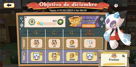 Los premios especiales de este mes son Froslass, Galletas de Froslass y mejoras de su atuendo.