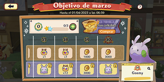 Los premios especiales de este mes son Goomy, Galletas de Goomy y mejoras de su atuendo.