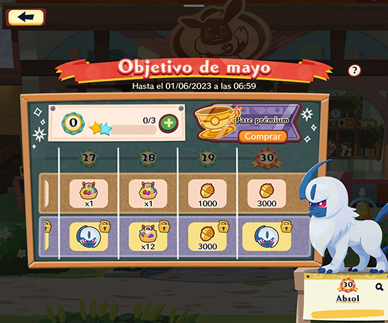 Los premios especiales de este mes son Absol, Galletas de Absol y mejoras de su atuendo.
