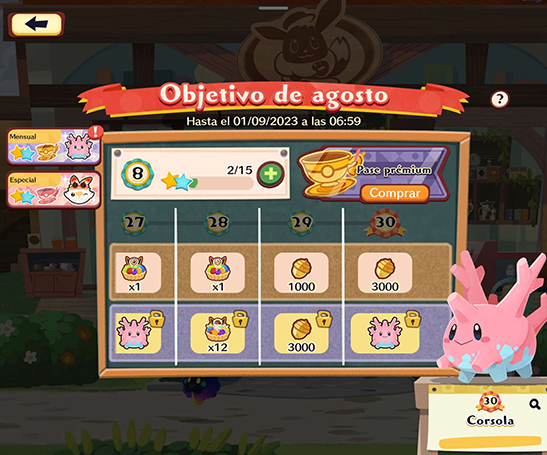 Los premios especiales de este mes son Corsola, Galletas de Corsola y mejoras de su atuendo.