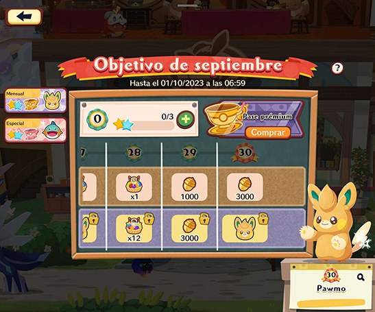 Los premios especiales de este mes son Pawmo, Galletas de Pawmo y mejoras de su atuendo.