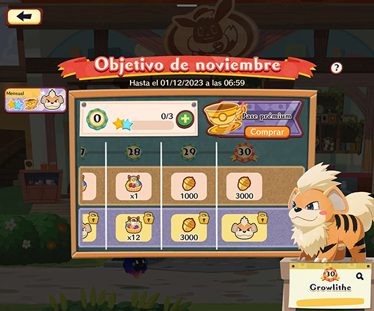Los premios especiales de este mes son Growlithe, Galletas de Growlithe y mejoras de su atuendo.