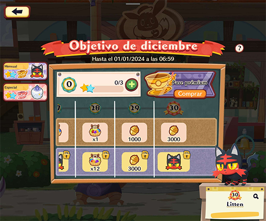 Los premios especiales de este mes son Litten, Galletas de Litten y mejoras de su atuendo.