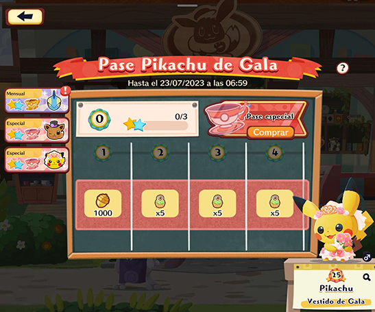 Los premios de este pase son Pikachu de Vestido Gala y Tartaletas.