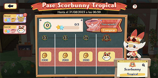 Los premios de este pase son Scorbunny Tropical y 20.000 Bellotas.