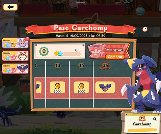 Los premios de este pase son Garchomp y 30.000 Bellotas.