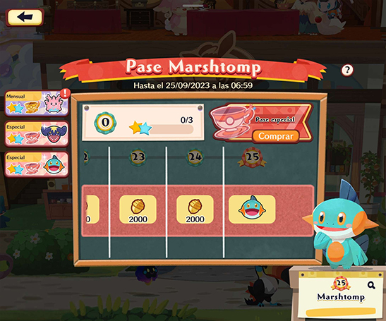 Los premios de este pase son Marshtomp y 15.000 Bellotas.